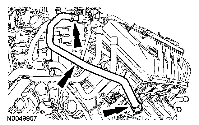 9. Disconnect the 2 coolant vent hoses from the intake manifold.