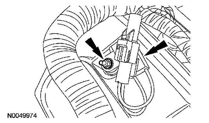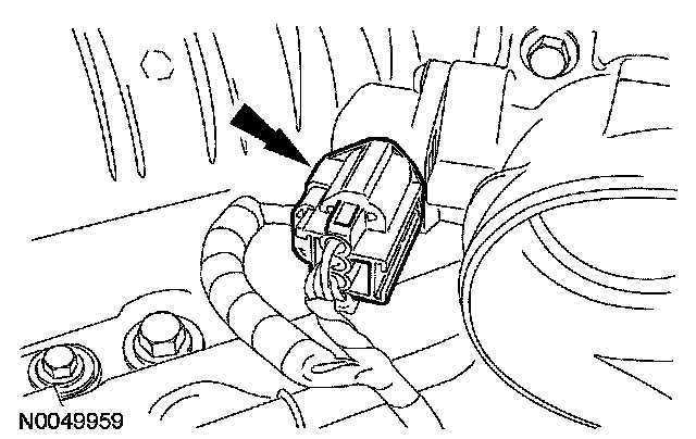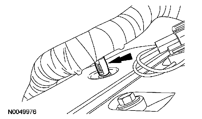 37. Disconnect the LH heated oxygen sensor (HO2S) electrical connector and pin-type retainer.