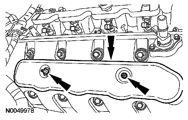 49. Remove the bolt, stud bolt and the RH coil-on-plug cover.