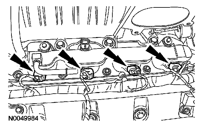 54. Disconnect the 4 LH fuel injector electrical connectors.