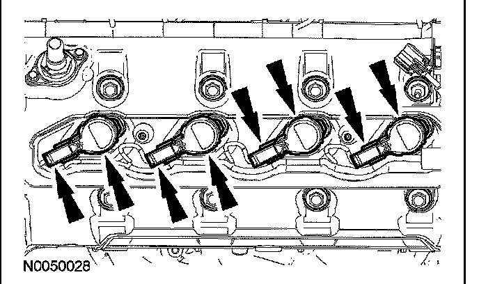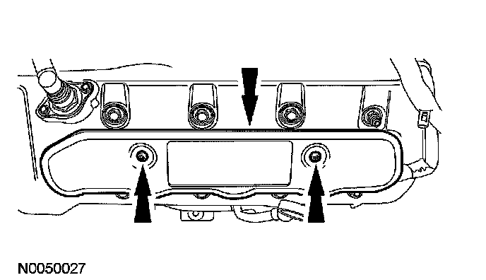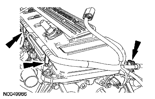 56. Detach the wiring harness retainers from the LH valve cover stud bolts.57. Remove the 2 bolts and the LH coil-on-plug cover.