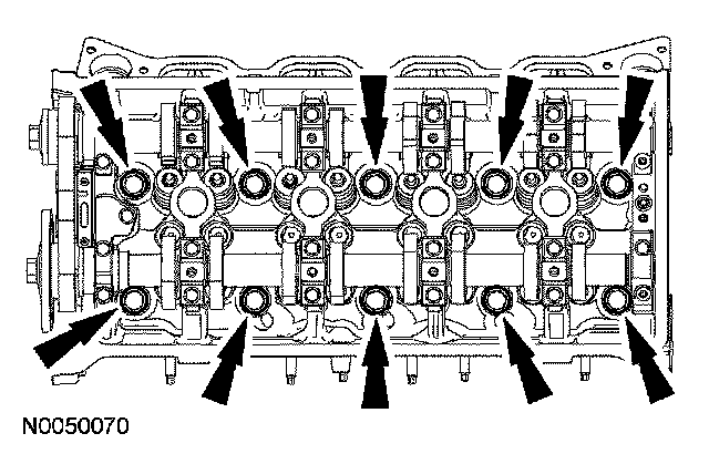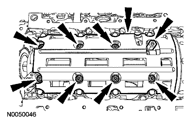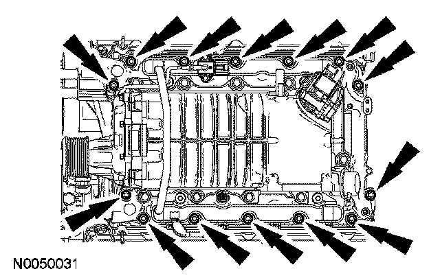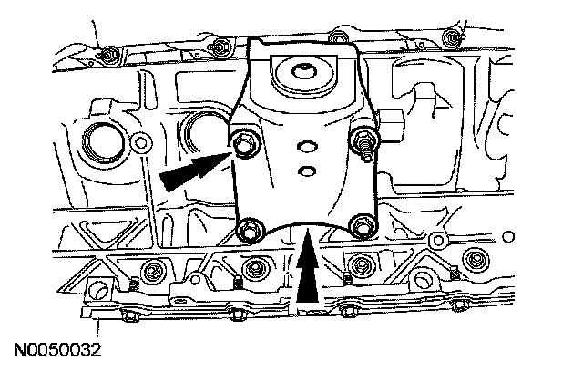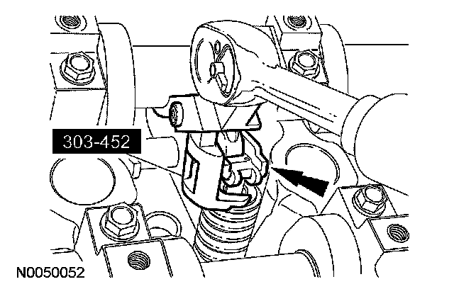 CAUTION: Place clean shop towels over exposed engine cavities. Carefully remove the towels so foreign material is not dropped into the engine.