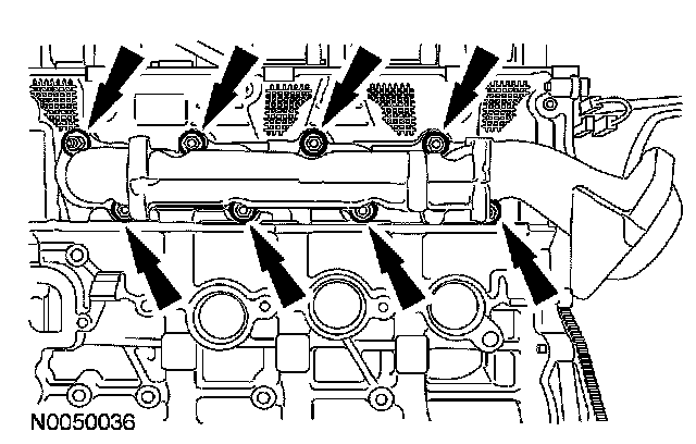 68. Remove the coolant tube assembly-to-LH cylinder head bolt.