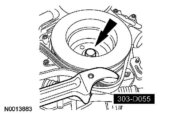 81. Using the special tool, remove the crankshaft pulley bolt and the washer.