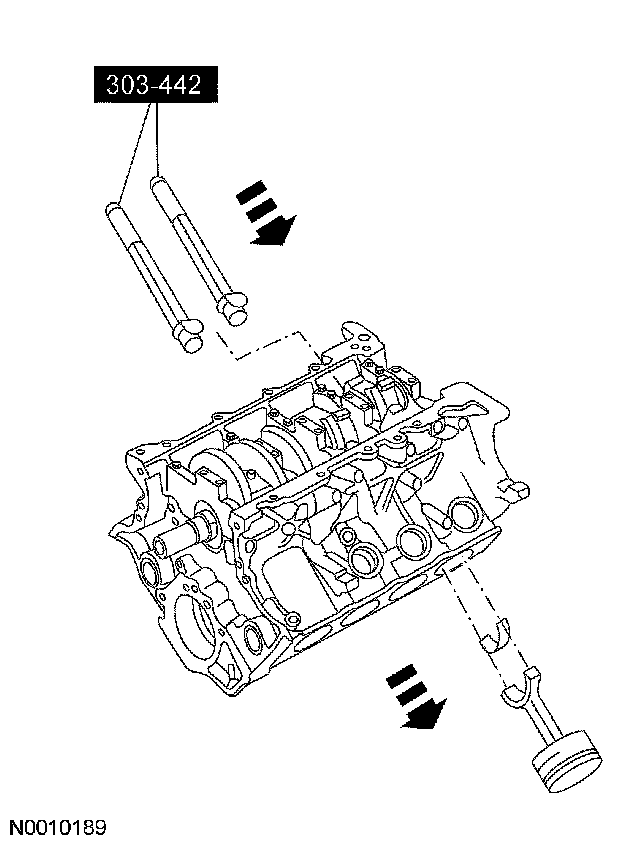 Using the special tools, push the pistons 1 through 6 through the top of the cylinder block.