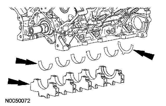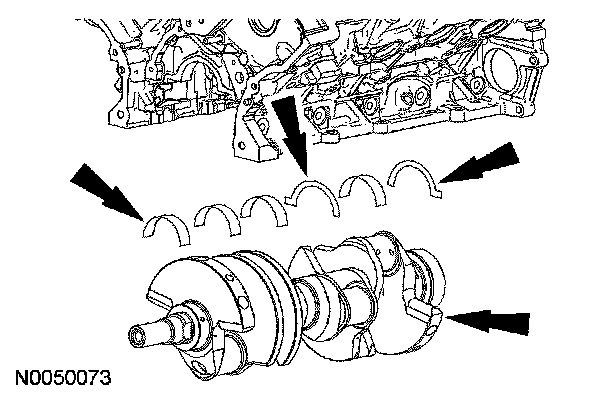 108. Remove the main bearing caps, the lower crankshaft main bearings and the lower thrust washer.