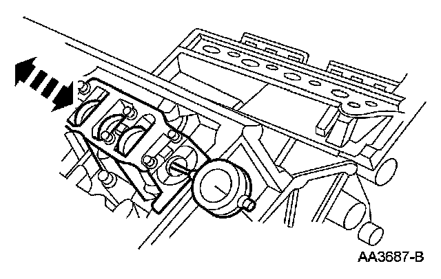 5. Move the camshaft to the front of the cylinder head. Note and record the camshaft end play.