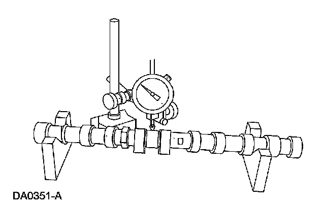 1. NOTE: Camshaft journals must be within specifications before checking runout.