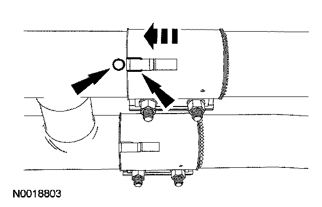 2. Loosen the exhaust coupler and disconnect the intermediate pipe from the catalytic converter assembly. Discard the exhaust coupler.