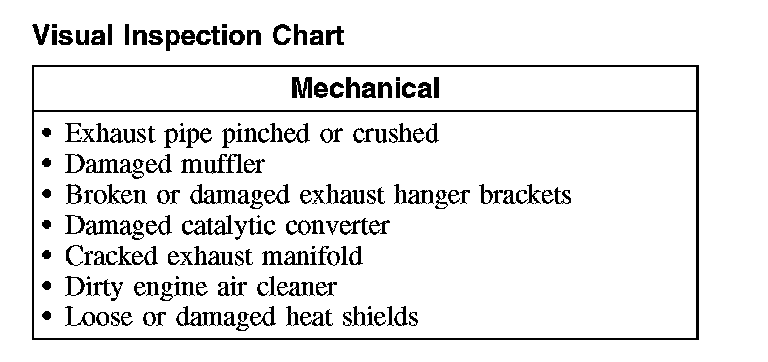 2. Visually inspect the components of the exhaust system and related controls that may affect exhaust gas quality or loss of power.
