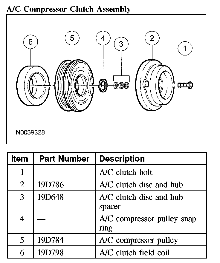 - Internal FS18 A/C compressor components are not serviced separately. The A/C compressor is serviced only as an assembly. The clutch disc and hub, A/C compressor pulley and bearing and clutch field coil are serviceable.