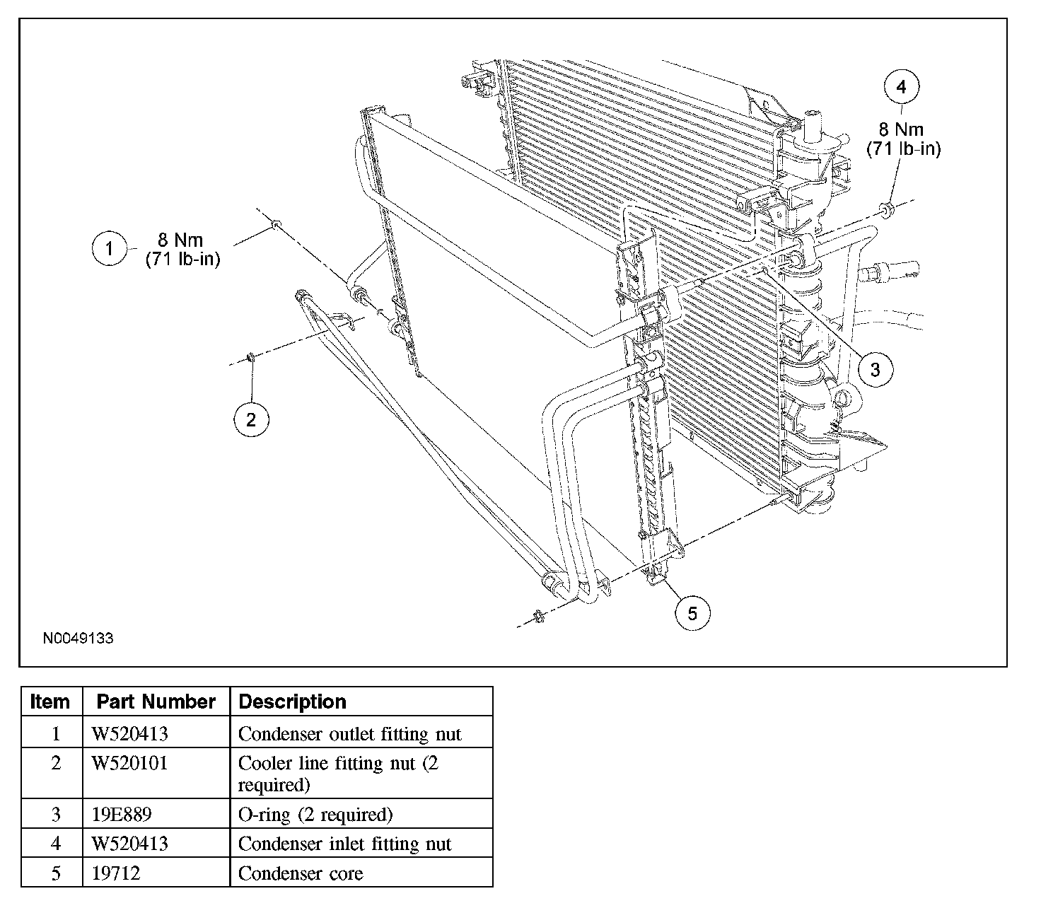 3. Remove the condenser inlet fitting nut and disconnect the fitting.