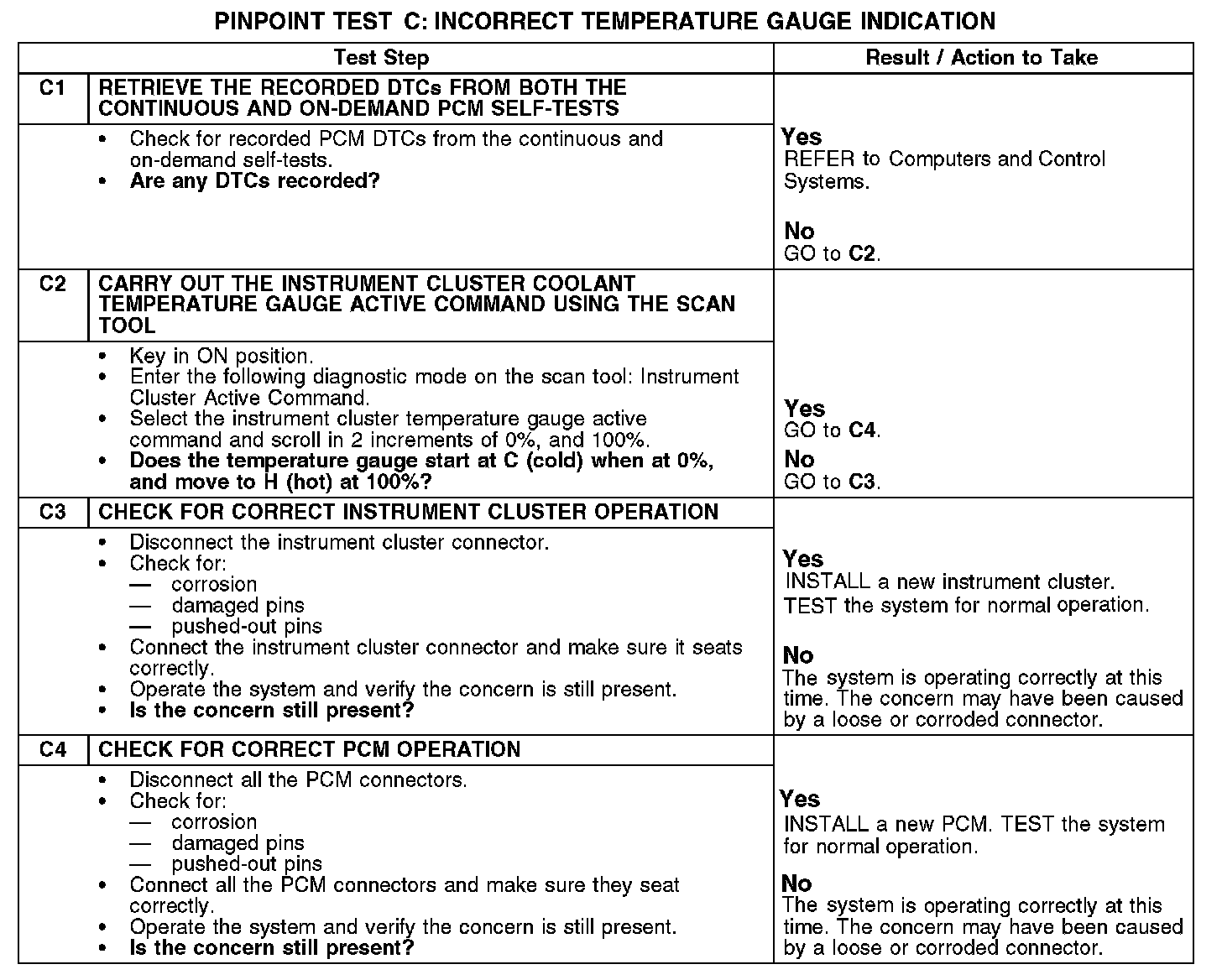 PINPOINT TEST C: INCORRECT TEMPERATURE GAUGE INDICATIONC1-C4: