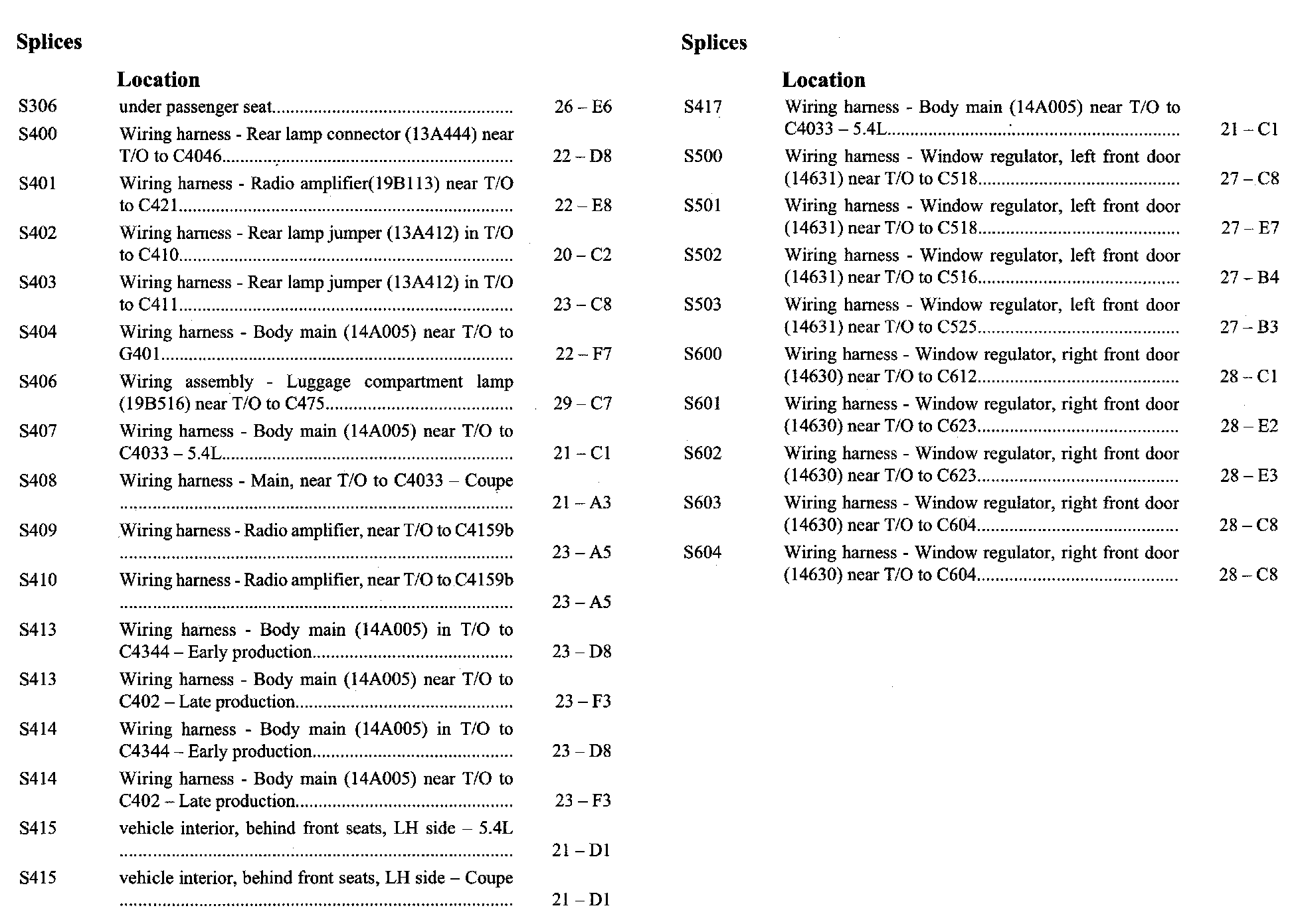 If a link on the Splice Location Index to a View is not provided, that means that the Splice and/or View in question does NOT apply to the vehicle model selected.