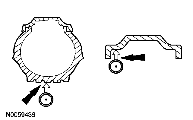 6. NOTE: If there is a vast difference in measurements taken from a wheel and tire assembly checked (on the vehicle) compared to readings taken (off the vehicle), check for excessive bolt circle runout, excessive hub runout or a fitting concern between the hub and wheel.