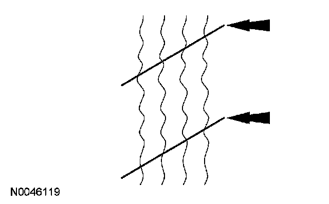 Diagonal wear occurs diagonally across the tread area and around the circumference of the tire. To determine whether tires have this type of wear, visually inspect the tires to determine if the wear pattern runs diagonally across the tread and around the circumference of the tire. In some instances, you may need to measure the difference in tread depth along the diagonal wear pattern.