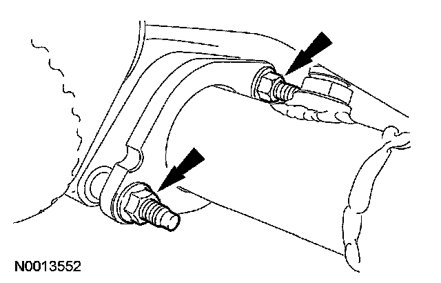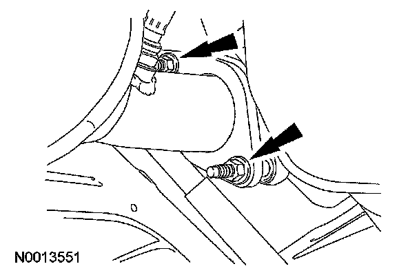 ^ Starting with the upper nut, alternately tighten, in 10 Nm (89 inch lbs.) increments, the LH catalytic converter-to-exhaust manifold nuts to specification.