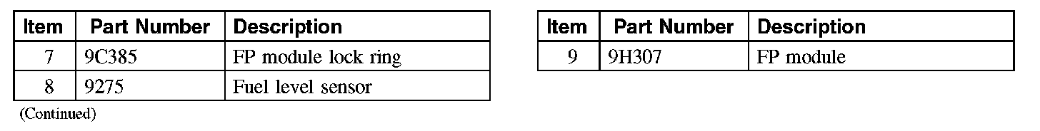 5. CAUTION: The fuel pump (FP) module and fuel level sensor will be below the fuel level in the tank when the tank is full. Make sure to drain 1/8 of the fuel capacity through the filler pipe prior to removing the pumps or fuel spillage will occur.
