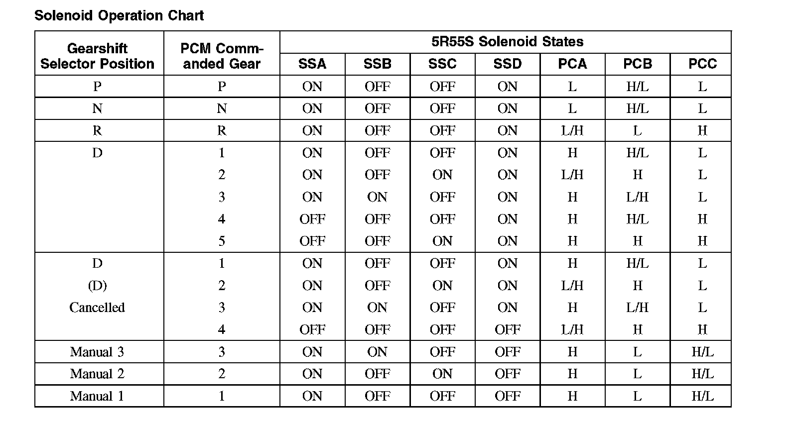 Solenoid Operation Chart