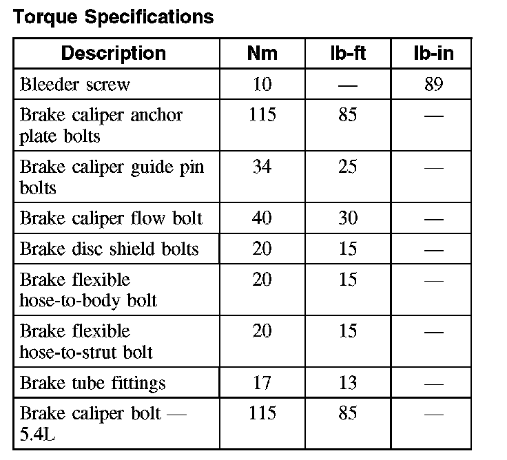 Torque Specifications, Front