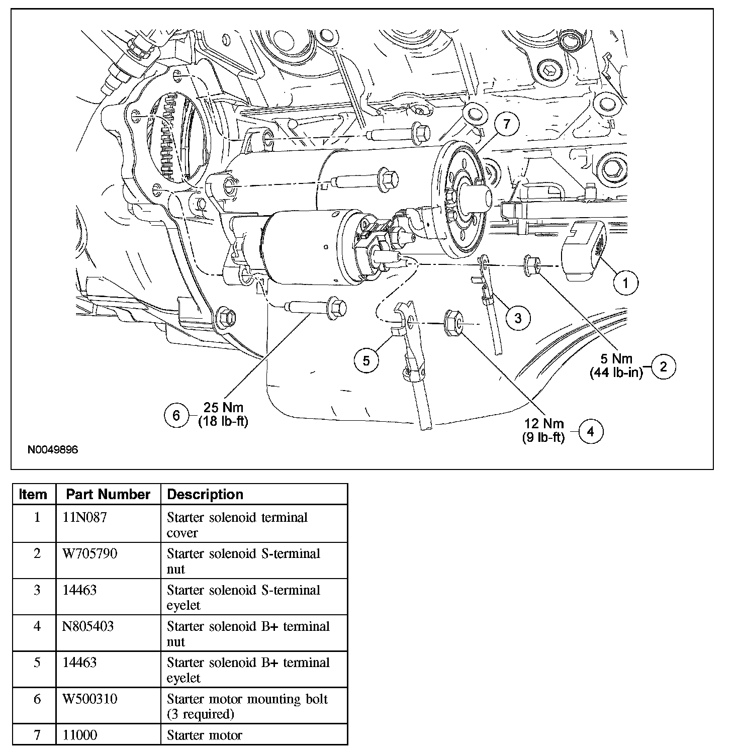 - Tighten the B+ terminal nut to 12 Nm (9 lb-ft) and the S-terminal nut to 5 Nm (44 lb-in).