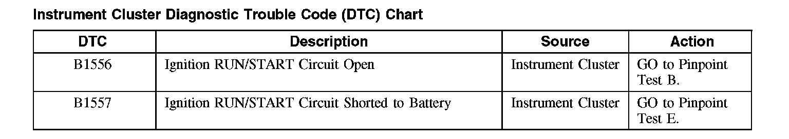 Instrument Cluster Diagnostic Trouble Code (DTC) Chart