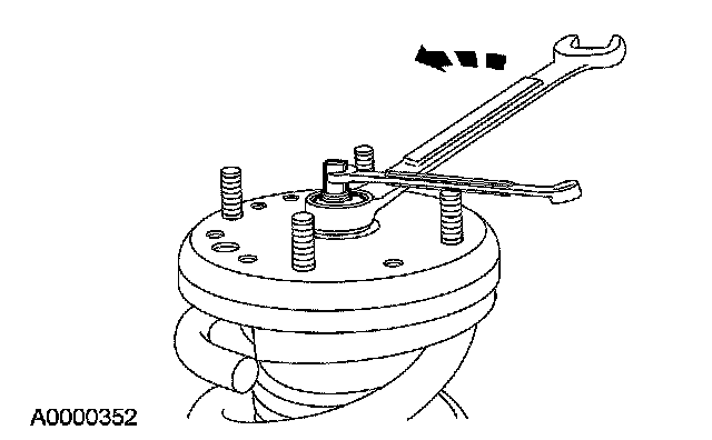 3. While holding the strut rod, remove and discard the strut rod nut and washer and remove the strut.
