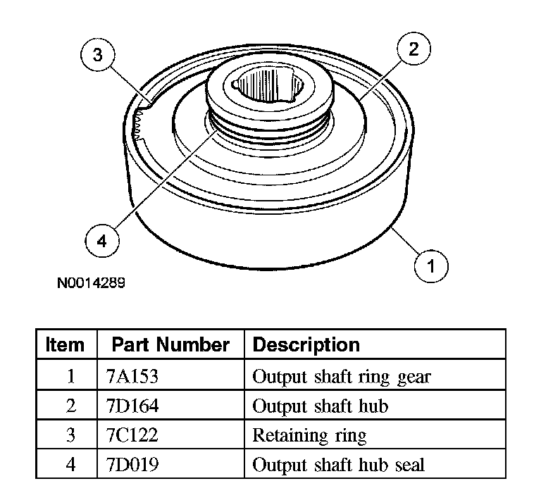 1. Inspect the output shaft ring gear and hub shaft assembly for damage. If repair is necessary, use the procedure.