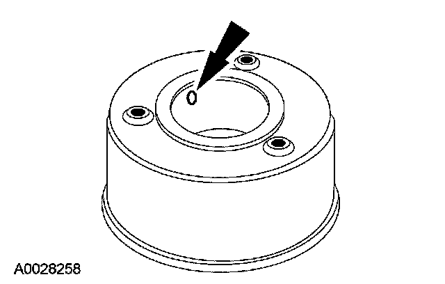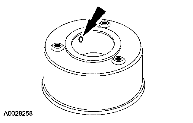 ^ Apply air pressure to the hole in the drum to remove the coast clutch piston while blocking the other hole with a finger.