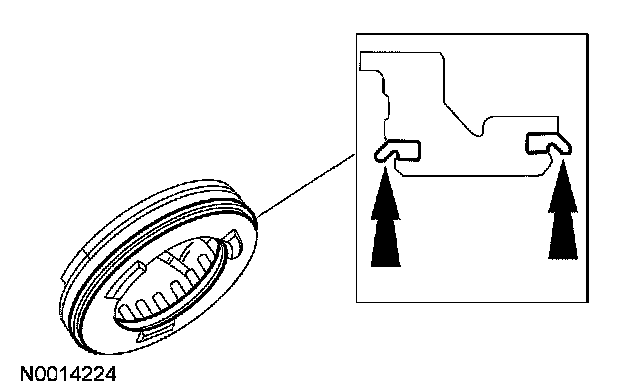 7. Remove and discard the coast clutch piston inner seal and the coast clutch piston outer seal.