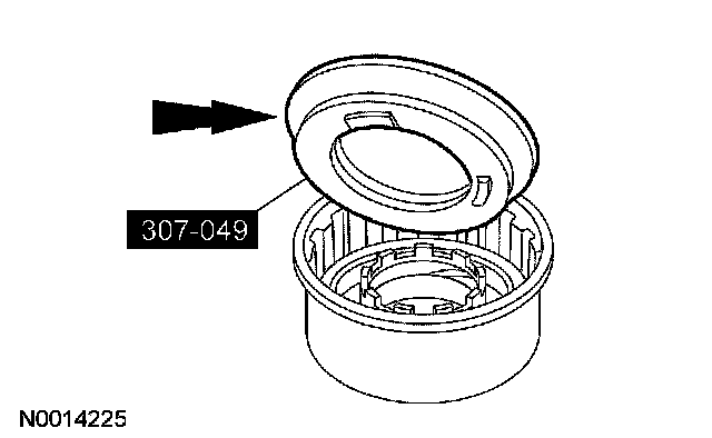 5. CAUTION: Do not fully compress the special tool or damage to the coast clutch piston spring retainer may occur.