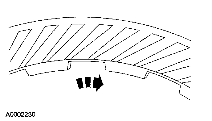 When installing friction plates, the word TOP should face up. If reusing plates, grooves must be installed clockwise. Install the coast clutch disc pack.