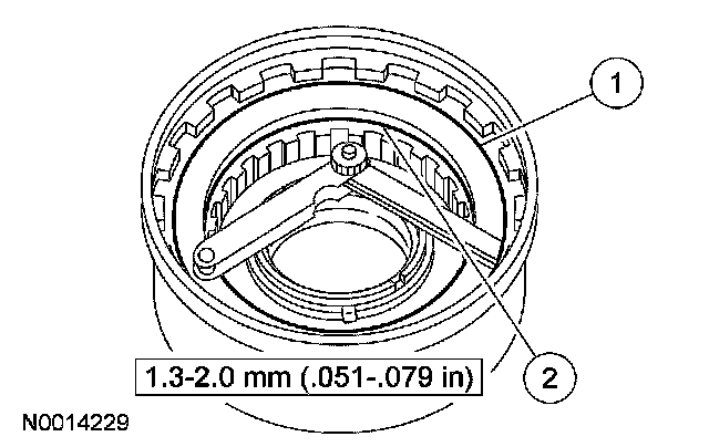 2. Check clearance between the coast clutch retaining ring and coast pressure plate. Clearance should be 1.3-2.0 mm (0.051-0.079 in). If clearance is not within the specification, install a correct coast clutch retaining ring that will provide the correct free play adjustment.