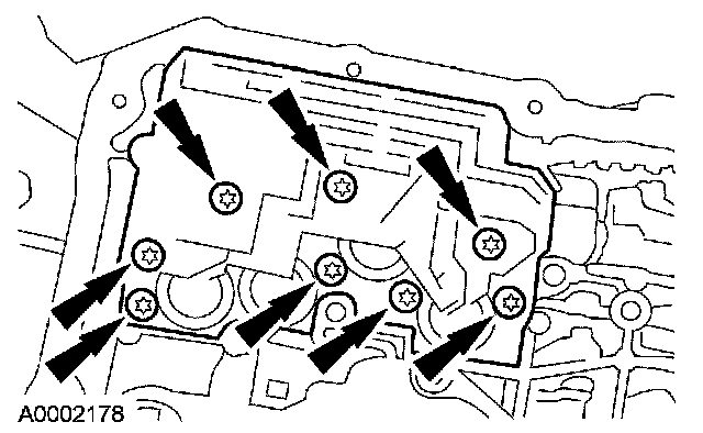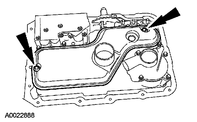 Remove the 16 transmission fluid pan screws, transmission fluid pan and gasket.