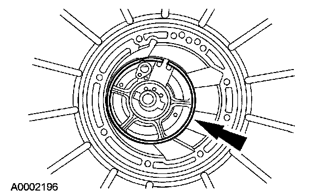Using the special tool, remove the overdrive servo cover retaining ring and cover.