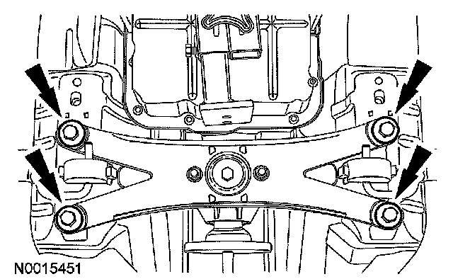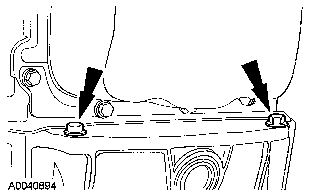 7. Remove the rear transmission crossmember-to-floor pan screws.