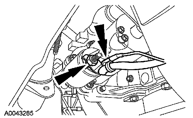 6. Remove the HO2S connector from the front of the transmission pan rail.