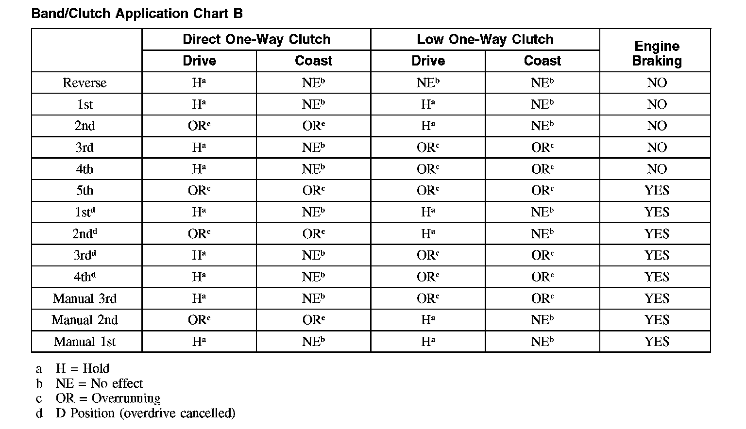 Band/Clutch Application Chart B