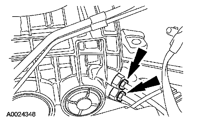 5. Remove the cooler return line (upper line) from the fitting on the transmission case.