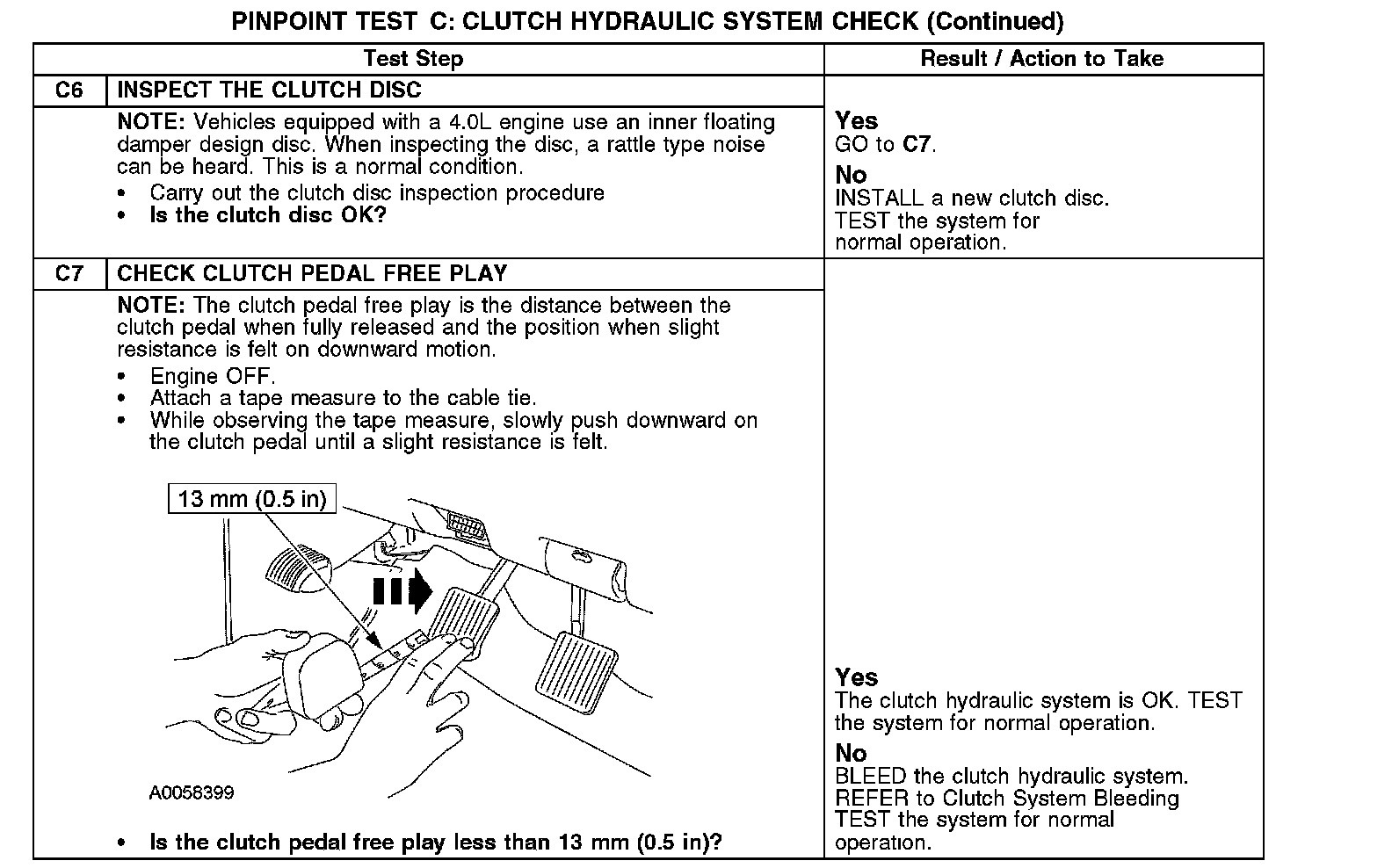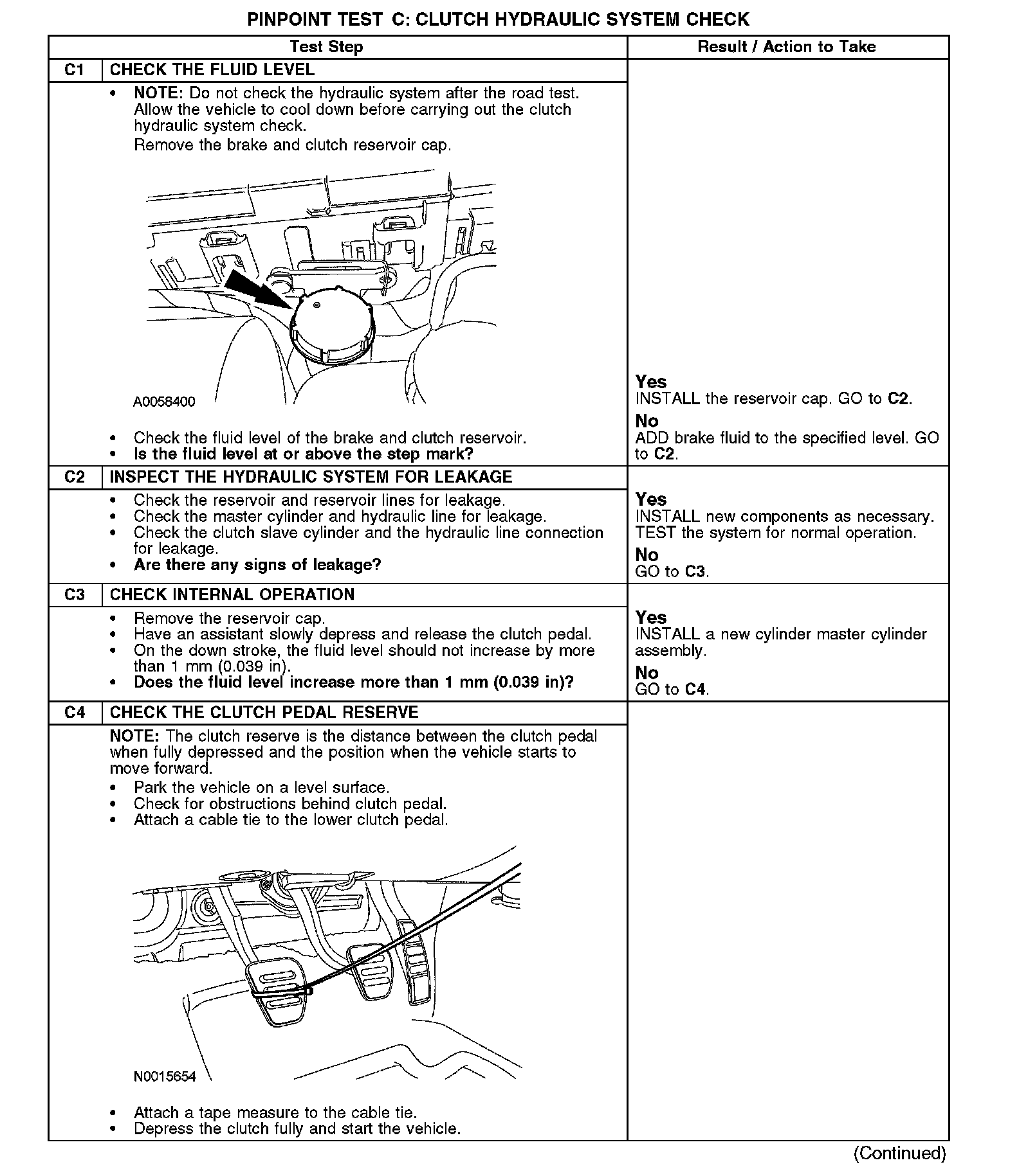Test C: Clutch Hydraulic System Check