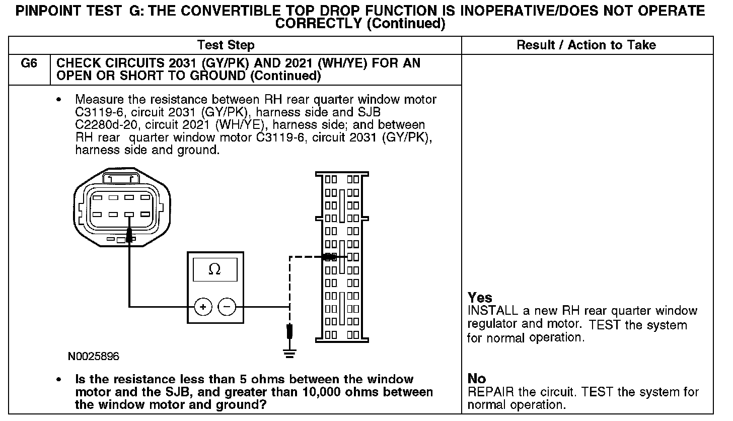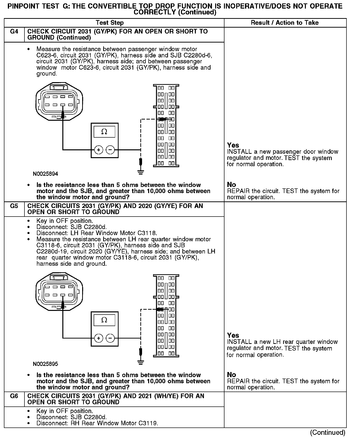 PINPOINT TEST G: THE CONVERTIBLE TOP DROP FUNCTION IS INOPERATIVE/DOES NOT OPERATE CORRECTLYG1-G4: