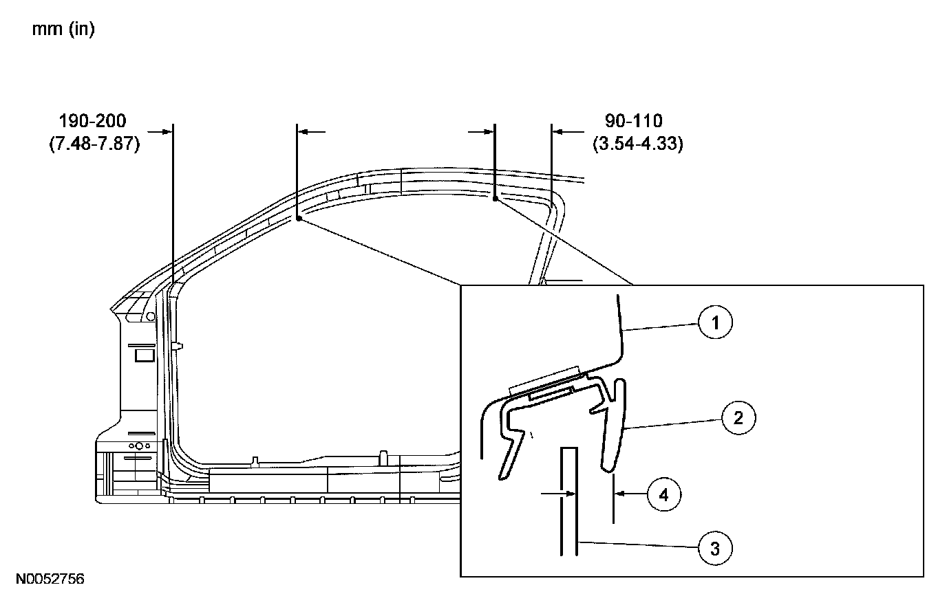 3. Check the dimension of the gap between the door window glass and the weatherstrip retainer in the locations shown. If the dimension is within the specification, only a final adjustment may be required.