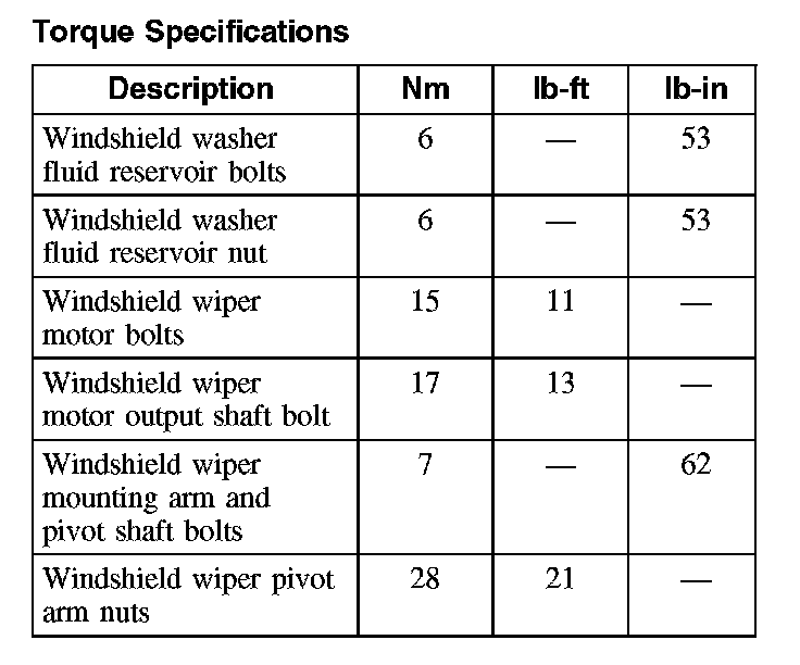 Torque Specifications