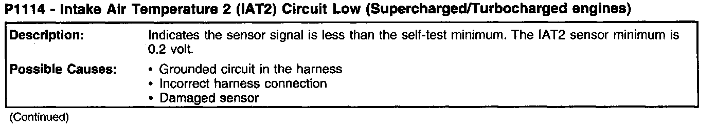 P1114 - Intake Air Temperature 2 (IAT2) Circuit Low (Supercharged/Turbocharged Engines) (Part 2):