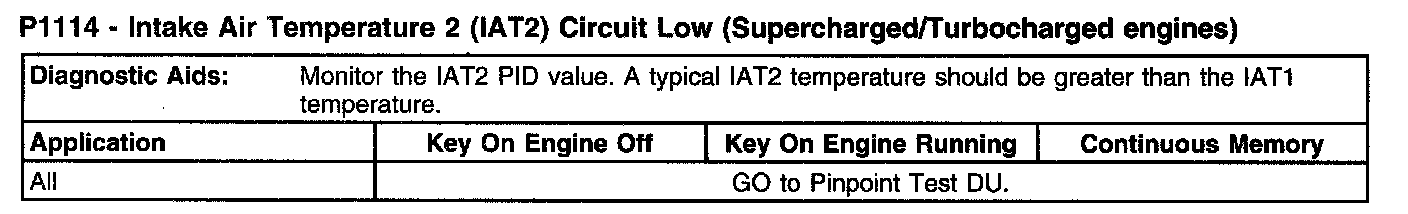P1114 - Intake Air Temperature 2 (IAT2) Circuit Low (Supercharged/Turbocharged Engines) (Part 1):