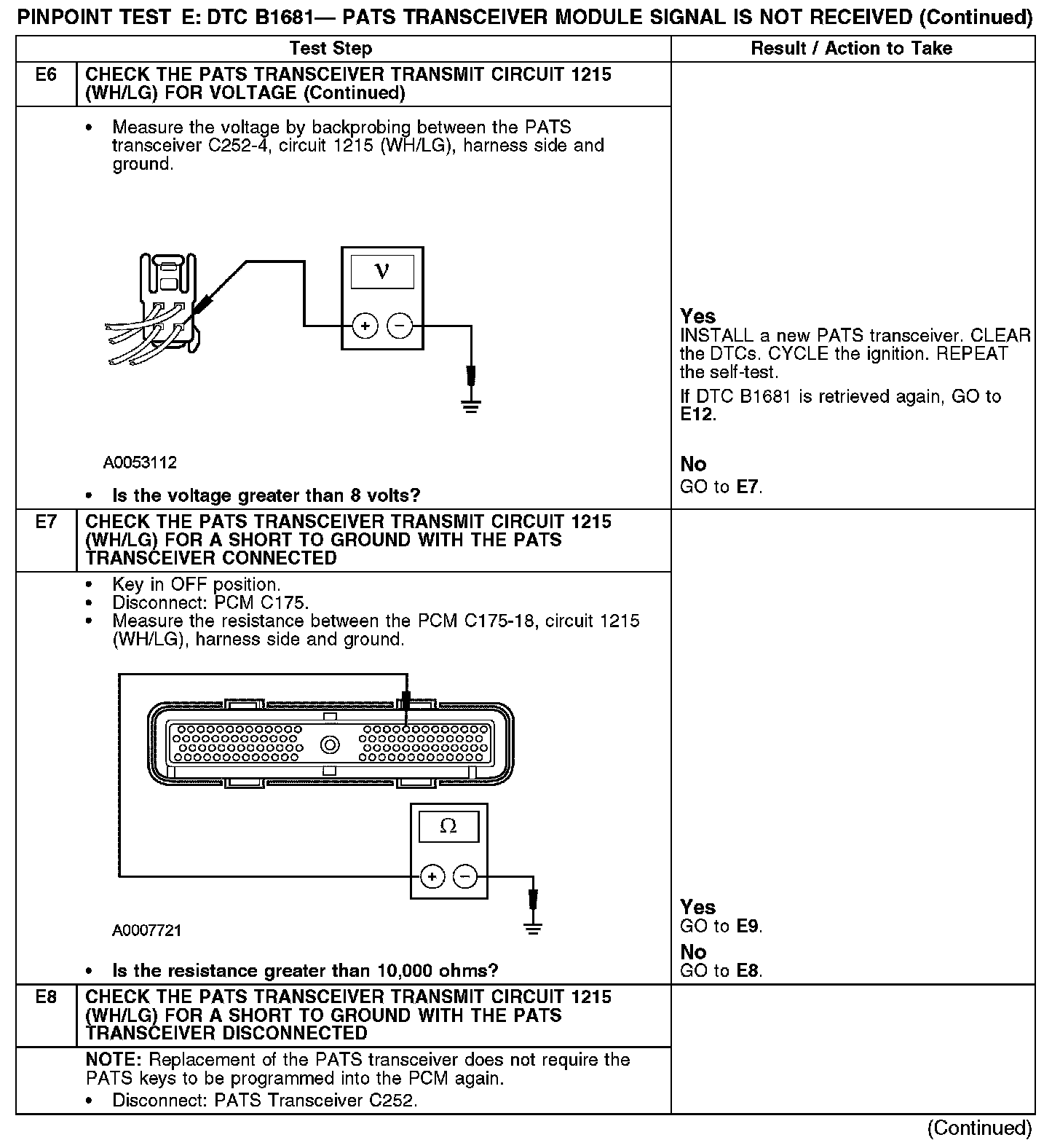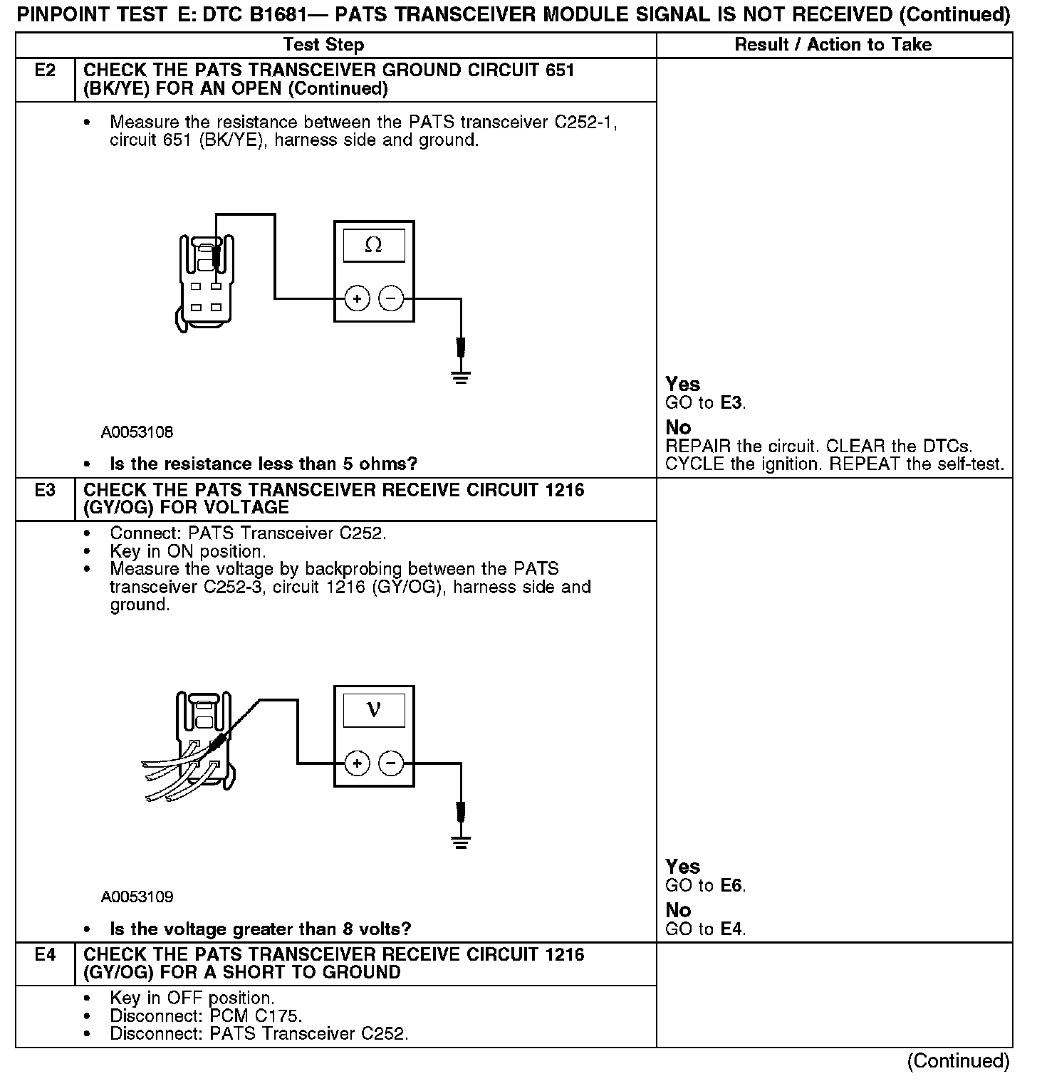 PINPOINT TEST E: DTC B1681 - PATS TRANSCEIVER MODULE SIGNAL IS NOT RECEIVEDE1-E2: