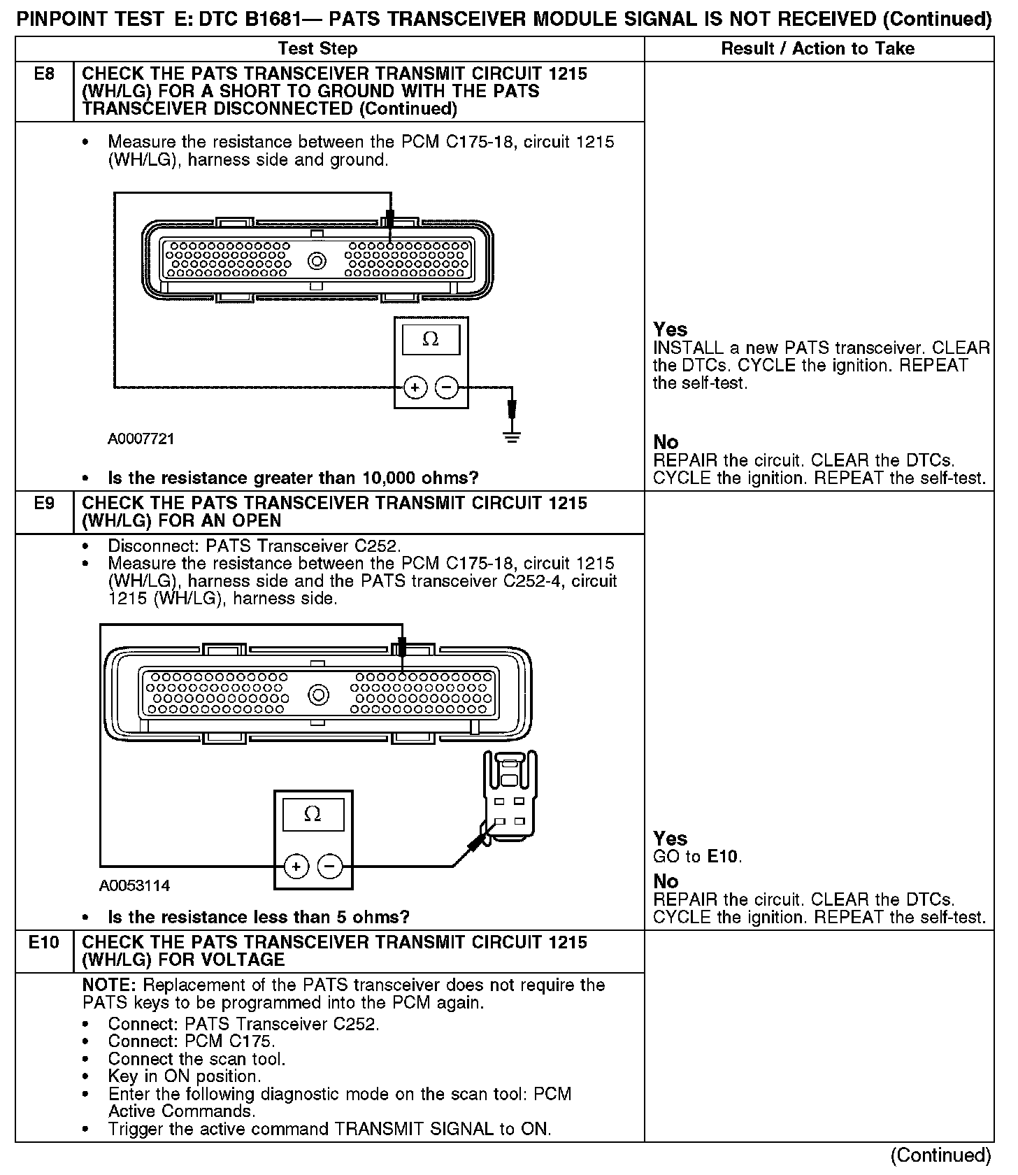 Test E: DTC B1681 - PATS Transceiver Module Signal Is Not Received