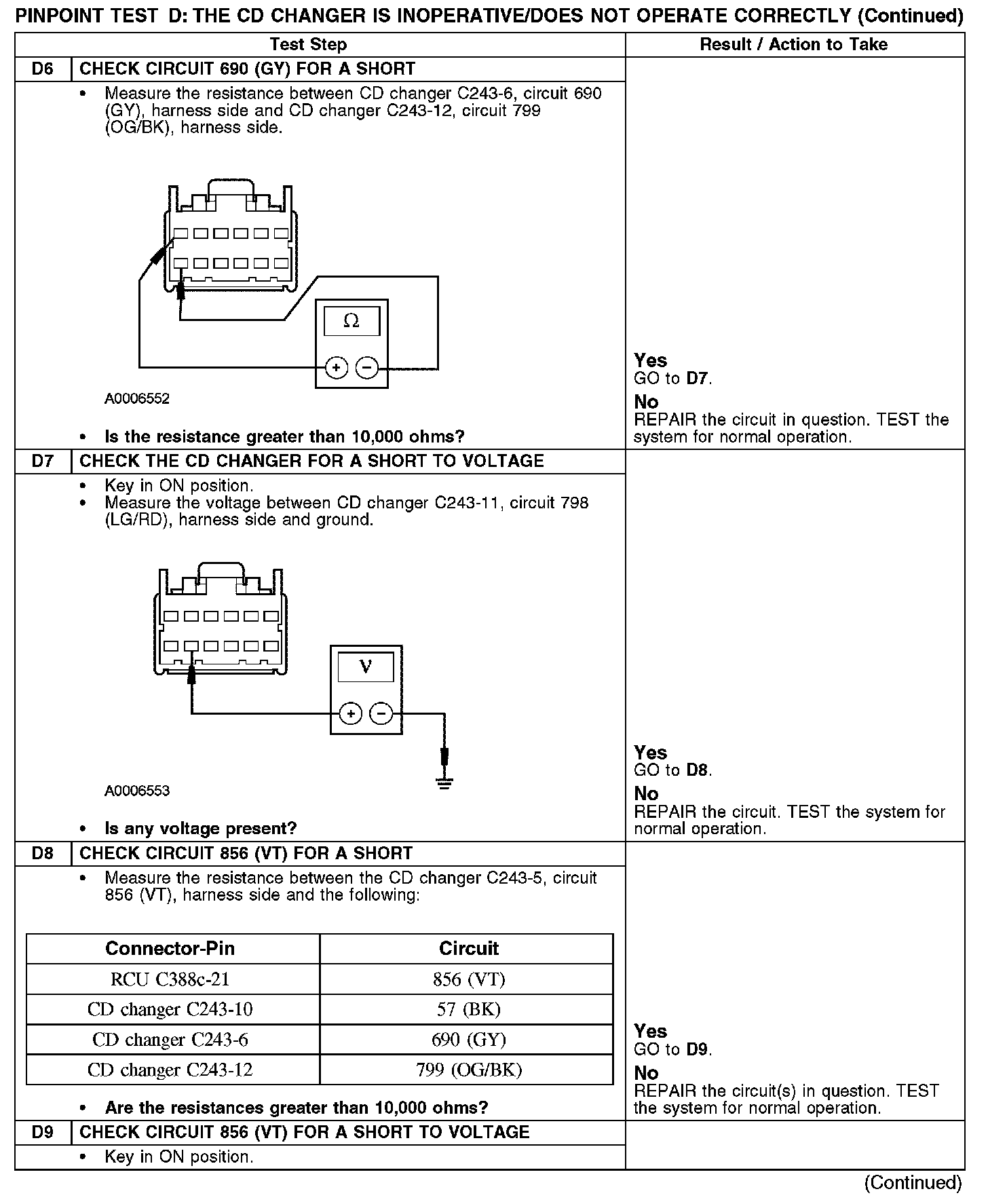 PINPOINT TEST D: THE CD CHANGER IS INOPERATIVE/DOES NOT OPERATE CORRECTLYD1-D5: