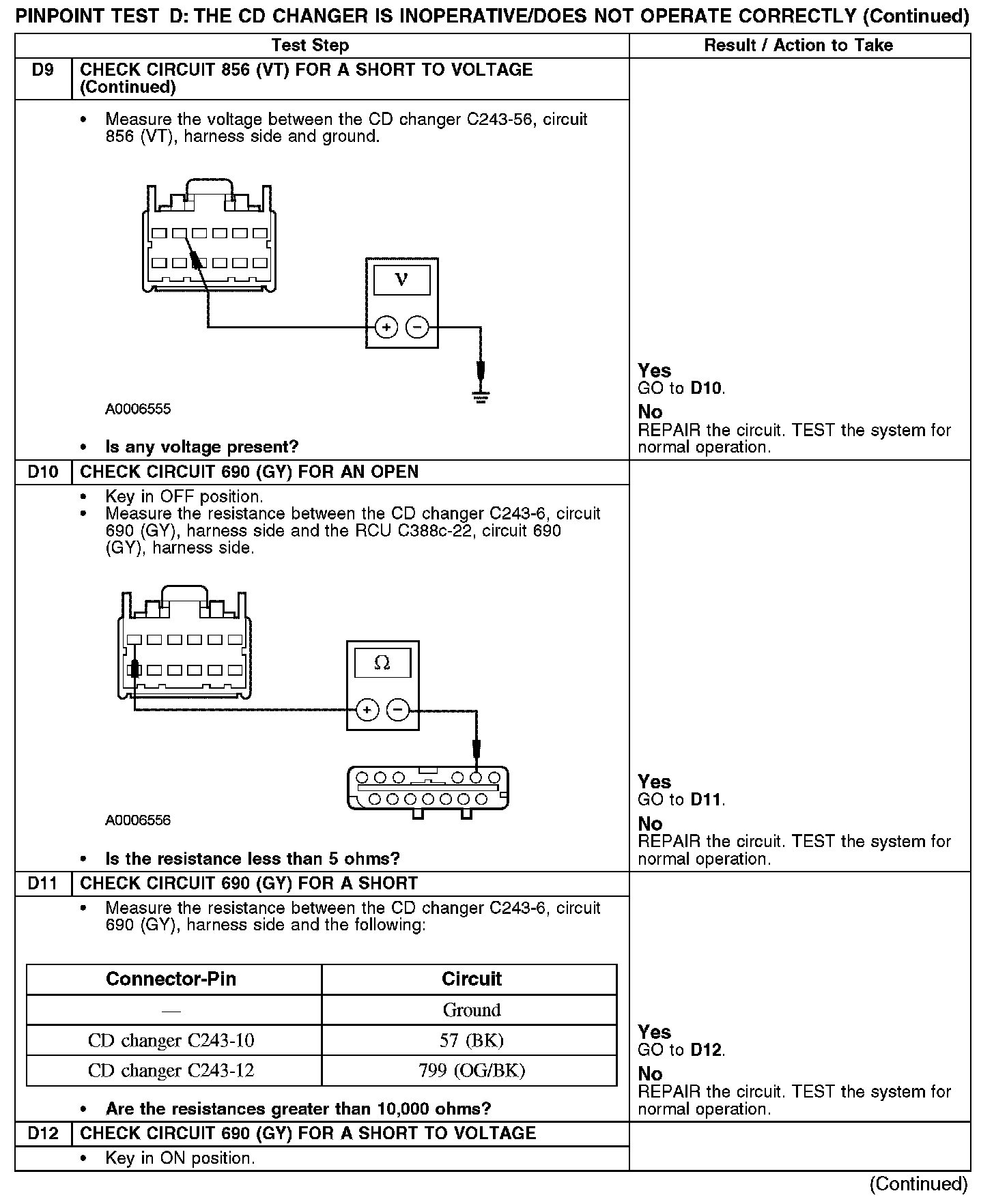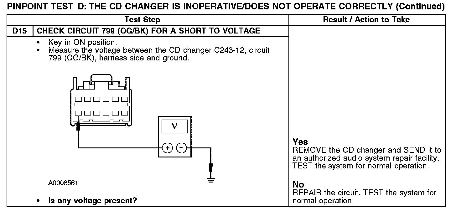 Test D: The CD Changer Is Inoperative/Does Not Operate Correctly