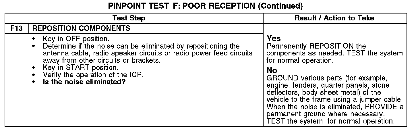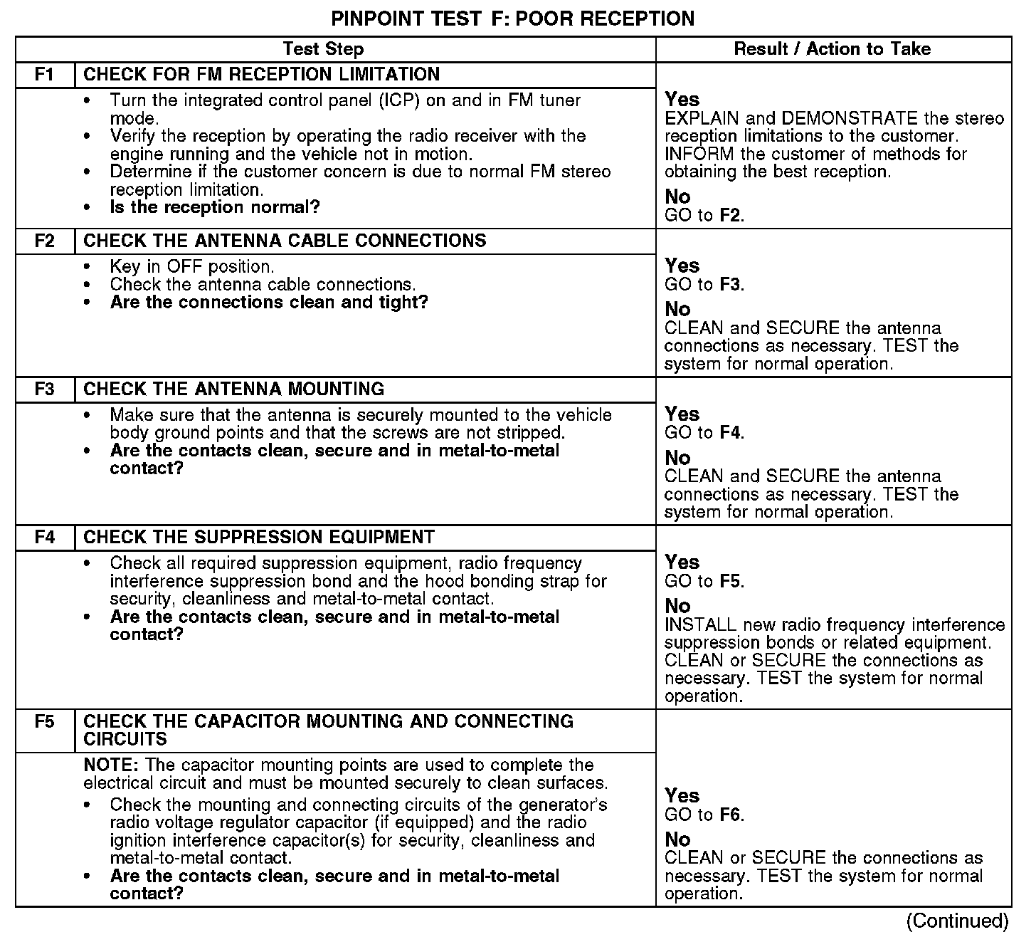 PINPOINT TEST F: POOR RECEPTIONF1-F5: